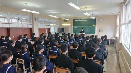 4月7日(水) 2年生 学年集会 公開日 2021/04/07 更新日 2021/04/07 2年生 本日最初の活動は、学年集会でした。 学年担当の先生方からの自己紹介や生徒達にがんばって欲しいことを話しました。 みんな真剣に話を聞いています。