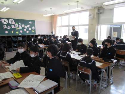 4月9日(金)1年生「オリエンテーション」 公開日 2021/04/09 更新日 2021/04/09 1年生 上滝中学校での生活がスムーズにできるよう、学校生活の細かな動きを確認する学活です。 冊子を見ながら、一つ一つ確認です。
