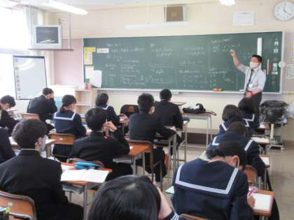4月9日(金)2年生「授業開始!」 公開日 2021/04/09 更新日 2021/04/09 2年生 1組は数学。早速学んでいるのは「多項式」です。 2組は国語。詩の中に使われている表現方法について学んでいます。「体言止め」「倒置法」・・・