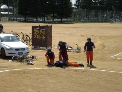 今日の午後は、スタントマンを招いての交通安全教室でした。