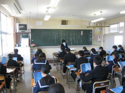 1組は理科。身近な生物を資料を見ながら観察していました。