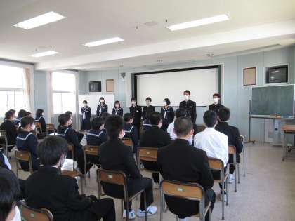 本日の6時間目に、2年生の前期に学年プログラム委員として活躍してくれる8名の結成式を行いました。