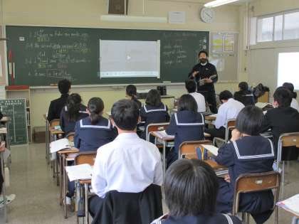 4月21日(水)2年生「授業風景」 公開日 2021/04/21 更新日 2021/04/21 2年生 上2−1、下2−2の英語の授業風景です。 動画や画像等を用いながら、授業が行われていました。 元気よく英語で話している姿が見られました。