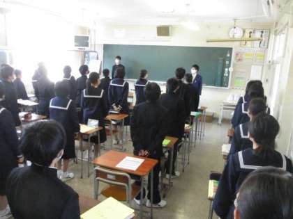 1組の目標は「姿勢良く話を聞く」、2組の目標は「元気にあいさつをする」です。1限目は上々のスタートが切れました。みんなで声を掛け合い、意識して、6限まで頑張ってほしいです。