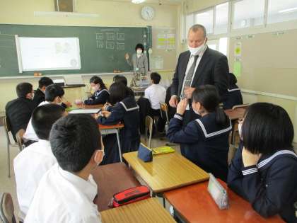 4月23日(金)2年生「Heat Up!」 公開日 2021/04/24 更新日 2021/04/24 2年生 アシスタントイングリッシュティーチャー(ALT)のリチャード先生と共に英語を学びました。 ゲームの要素を取り入れた授業で、みんな盛り上がりました。