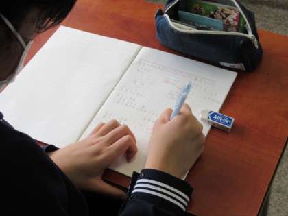 1組は国語。「自分流『枕草子』を書こう」という課題です。みんな静かに考えています。