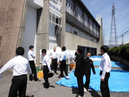 5月6日(木)部活動「次の大会に向けて」 公開日 2021/05/06 更新日 2021/05/06 部活動 陸上競技部は、4、5日、記録会に参加しました。昨日は暴風の中大変ハードなものとなりました。今日は天気も回復し、テントなどを天日干ししています。短い休み時間を利用し、3年生を中心に全員でてきぱきと動いていました。道具を大切にし、全員で活動できるチームワークのよさがが陸上競技部の強さの秘密かもしれません。