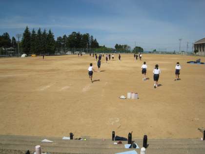 1組は体育。リレーグループで、バトンパス練習を意欲的に行っていました。