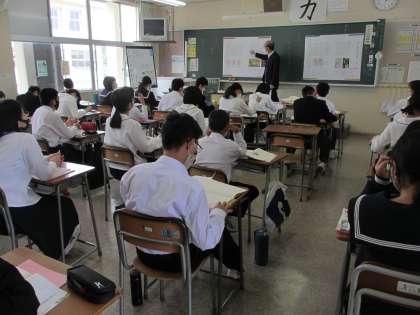 5月12日(水) 2年生「授業風景」 公開日 2021/05/12 更新日 2021/05/12 2年生 2年生の2、3限における授業の風景です。 1、2枚目は、2組の国語、数学の授業をそれぞれ写しています。 3枚目は、1組の体育の授業で、スポーツ経験者と初心者が共に競技を行うために必要なルールは何かを考えていました。 どちらのクラスの生徒も、活動時には積極的に、板書などは静かに集中して取り組んでいる姿が見られました。