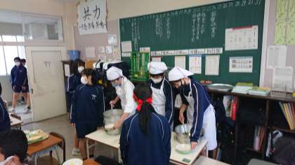 5月17日(月)2年生「給食準備 その2」