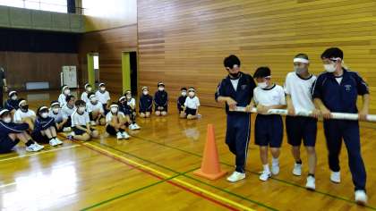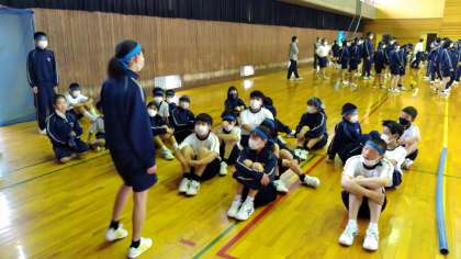 5月19日(水)1年生「体育大会練習」 公開日 2021/05/19 更新日 2021/05/19 1年生 1年生は団別練習で3年生から学年種目「台風の目」のコツを教わっていました。教わったことができるようにしっかり話を聞き、練習に取り組んでいました。