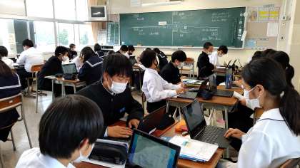 5月27日(木)1年生「授業の様子」 公開日 2021/05/27 更新日 2021/05/27 1年生 1組の保健体育では、富山マラソンについて、調べたり、アンケートに答えたりしていました。 2組の英語では、グループで音読練習をしていました。