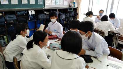 5月27日(木)1年生「道徳」 公開日 2021/05/27 更新日 2021/05/27 1年生 1年生の道徳は「山に来る資格がない」を題材として、節度、節制について考えていました。グループになって、1人1人の意見や考えを交換していました。