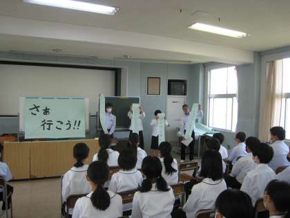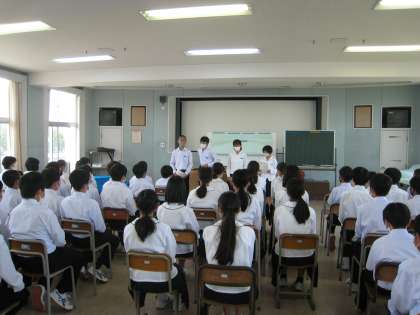 4人の学プロメンバーが昼休み、放課後の時間を使って、真剣に考えてくれた学年目標です。みんなも姿勢を正し、静かに学プロの発表を聴いていました。この学年目標を大切に、これから成長していってほしいです。
