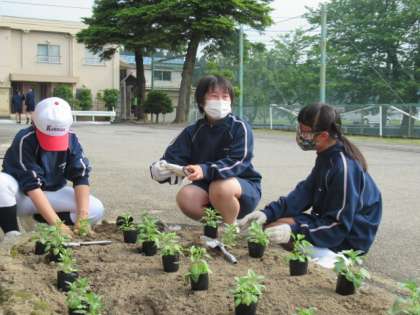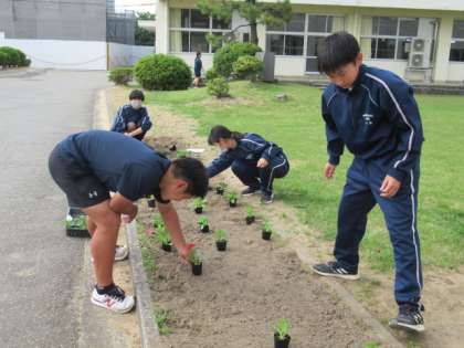 6月8日(火)「整美委員会・花の苗植え」 公開日 2021/06/08 更新日 2021/06/08 生徒会活動 部活動でがんばる仲間の近くには、花壇に苗を植えている生徒の姿が。 整美委員会の活動です。 美しい花壇ができますように。