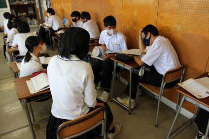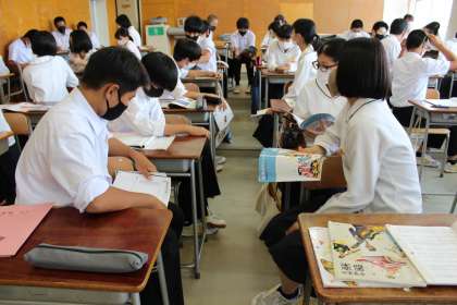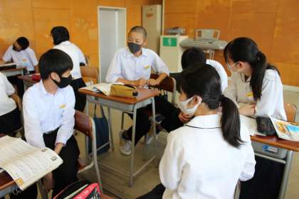 6月9日(水) 3年生「授業風景」 公開日 2021/06/09 更新日 2021/06/09 3年生 音楽の授業で、歌唱曲「花の街」を学習しています。 詩に込められた思いなどについてグループで話し合っているところです。