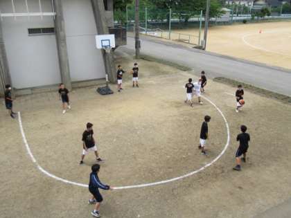 明日に初戦をひかえた男子バスケットボール部が、フォーメーションを確認しています。