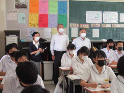 4名の学校評議員の方に授業を参観いただいた後、日頃地域で見ておられる子供たちのようすや今年度の学校経営についてご意見をいただきました。