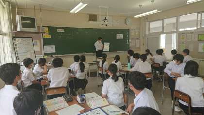 6月24日(木)2年生「授業風景その1」 公開日 2021/06/24 更新日 2021/06/24 2年生 2年1組は、先日各班で考えた、栄養バランスを考えた献立の発表をしていまいた。さまざまな献立にみんな感心しながら発表を聞いていました。