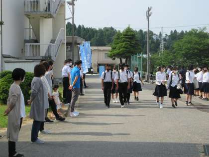 6月25日(金)「育友会あいさつ運動」 公開日 2021/06/25 更新日 2021/06/25 お知らせ※2024以前 おはようございます。 昨日に引き続き、育友会あいさつ運動がありました。 登校後あいさつの列に入る人が多く、より気持ちのよいあいさつ運動となりました。 あいさつの輪が広がる上滝中学校です。