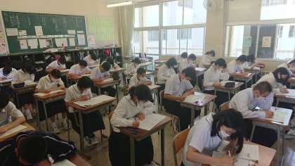 6月28日(月)2年生「期末考査」 公開日 2021/06/28 更新日 2021/06/28 2年生 いよいよ本日から期末考査が始まりました。 これまでにがんばってきたことを十分に発揮して欲しいです。