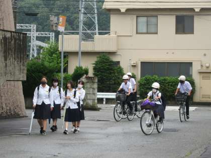 6月29日(火)「登校風景」 公開日 2021/06/29 更新日 2021/06/29 お知らせ※2024以前 おはようございます。 厚い雲に覆われていますが、幸い雨は降っておらず、自転車通学生はカッパを着ることなく、登校できています。 今日は期末考査2日目です。