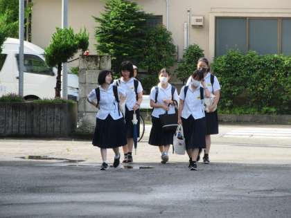 7月2日(金)「登校風景」 公開日 2021/07/02 更新日 2021/07/02 お知らせ※2024以前 おはようございます。 明け方まで降っていた雨は止み、晴れてきました。本日予定されている市民体育大会の軟式野球競技は無事実施されそうです。