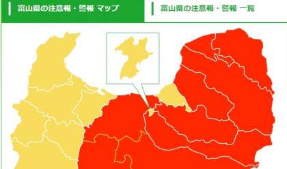 ただいま、富山市には「大雨警報」「洪水注意報」が発令中です。