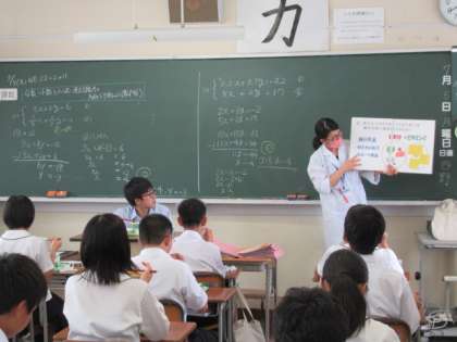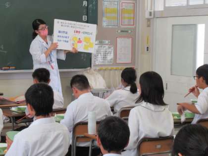 今日は、2年2組が学校栄養職員訪問を受けました。