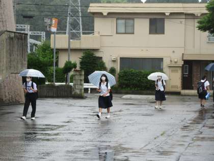 7月6日(火)「登校風景」 公開日 2021/07/06 更新日 2021/07/06 お知らせ※2024以前 おはようございます。 今朝は、時折強い雨が降ってきます。今週は梅雨らしい空模様が続くようです。 自転車通学生はカッパを着て、安全に気を付けて登校してきています。