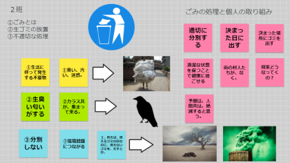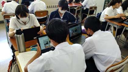 7月7日(水)3年生「保健体育」 公開日 2021/07/07 更新日 2021/07/07 3年生 3年生の保健体育では「ごみの処理について調べ、ジャムボードにまとめよう」というテーマで、クロムブックを使いグループで作業していました。初めて使うソフトにもすぐに対応し、楽しそうに作業を進めていました。