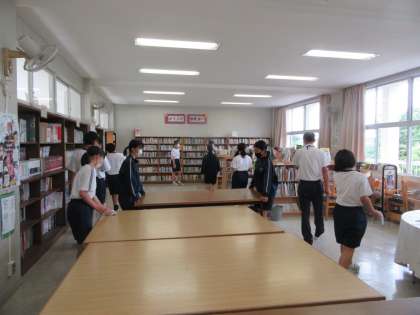 図書室は、机をずらして床をきれいにしました。