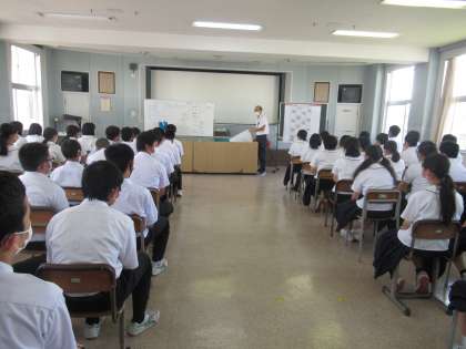 本日の6時間目に学年集会を行いました。内容は、部活動・校外学習についてです。