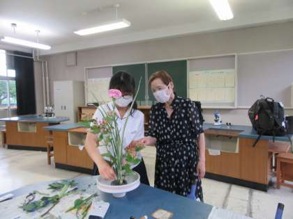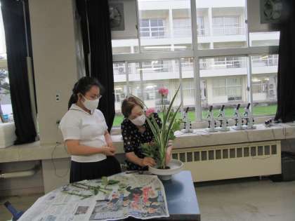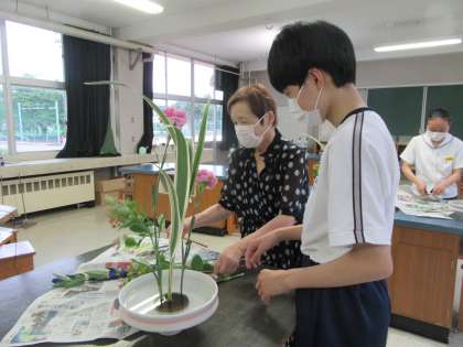 7月13日(火) 華道教室 公開日 2021/07/13 更新日 2021/07/13 部活動 本日放課後、華道教室が行われました。 講師の先生に丁寧に教えていただき、きれいになりました。 花は、「りんどう」「ききょうらん」「カーネーション」「ヒベリカム」です。