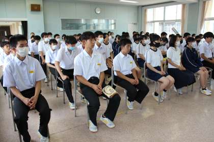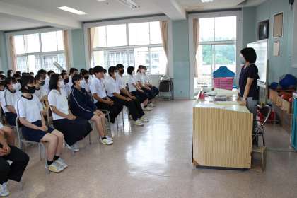 7月14日(水) 3年生「学年集会」 公開日 2021/07/14 更新日 2021/07/14 3年生 総合の時間に学年集会を行いました。まずは北信越大会に出場する陸上部員に、出場競技と抱負を語ってもらいました。 また、教員からオープンハイスクールについて、夏休みの学習について、日頃の過ごし方などについて話をしました。