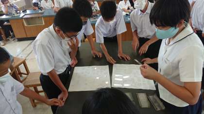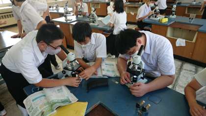 7月19日(月)2年生「授業風景その2」 公開日 2021/07/19 更新日 2021/07/19 2年生 2年2組は理科の授業です。 用意された、ゾウリムシや葉の断面の細胞を顕微鏡で観察しています。