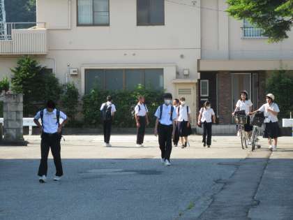 7月21日 登校風景 公開日 2021/07/21 更新日 2021/07/21 お知らせ※2024以前 おはようございます。 1学期終業式の朝となりました。 今朝も気持ちのよい挨拶からスタートしています。 1学期をきちんと締めくくることができそうです。
