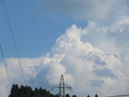 山のほうには入道雲が立ち上がっていました。夏の代表的な雲です。