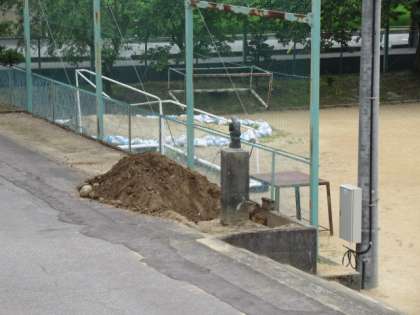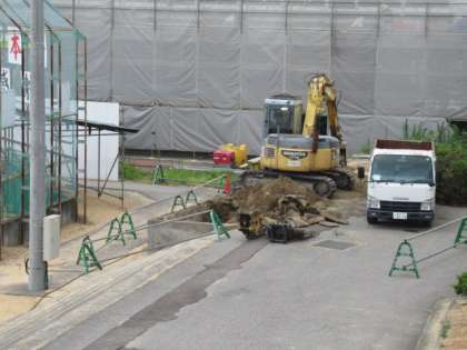 7月26日(月)「外構工事をしています」 公開日 2021/07/26 更新日 2021/07/26 お知らせ※2024以前 今日から、生徒玄関前の植栽部分とグラウンド階段中央部分の工事が始まりました。 植栽部分は再度作られ、グラウンド階段中央に国旗掲揚塔ができる予定です。 <生徒のみなさんへ> 付近を通行する際には、柵に近寄らず、安全に気を付けて行動しましょう。
