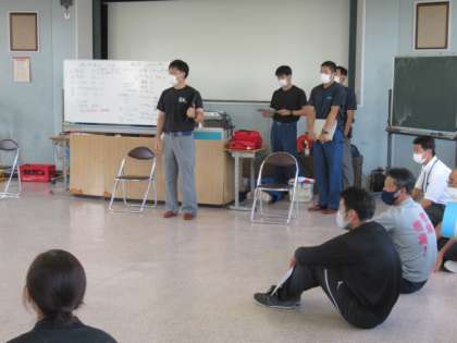 今日は大山消防署から4名の講師を招いて「救急救命講習」を行いました。