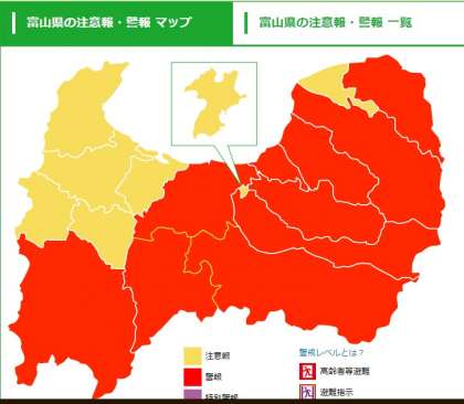 河川や用水の増水にお気を付け下さい。また、斜面の付近は崩落にもご注意ください。