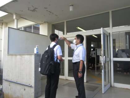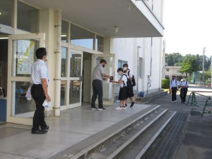 8月27日(金) 登校風景 公開日 2021/08/27 更新日 2021/08/27 お知らせ※2024以前 始業式の朝です。 2学期も気持ちのよい挨拶からスタートしています。 玄関で手指消毒をしてから教室に向かいます。