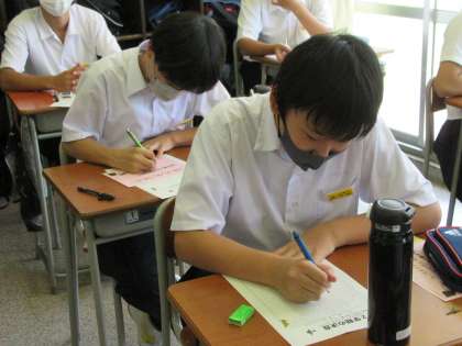 始業式が終わって、3年生の教室では、夏休み中の課題を集めたり、2学期の抱負や目標を書いたりしました。それぞれが1学期よりも前進しようとする気持ちが言葉に込められていました。2学期、82日のスタート!頑張りましょう。
