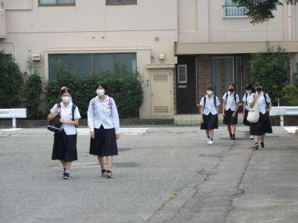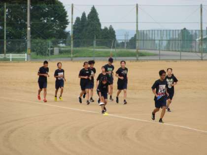 今朝は、駅伝部が朝練習をしています。みんな明るい表情で練習しています。