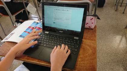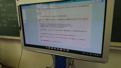 1組はクロムブックを利用し、その場でクラスのみんなの意見が見られるようにしています。