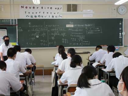 2組は数学で、因数分解を利用した解き方について学習しました。