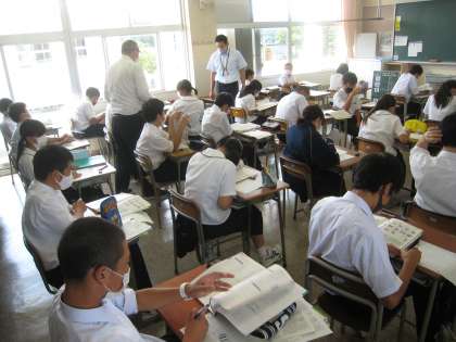 9月7日(火)1年生「授業風景」 公開日 2021/09/07 更新日 2021/09/07 1年生 2限目の様子です。 1組は英語。 動物や教科等、何が好きかを英語で質問したり答えたりしていました。 2組は国語。 場面展開に沿って、主人公の気持ちの変化を捉える内容に取り組んでいました。