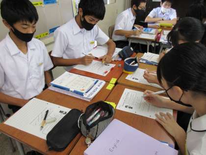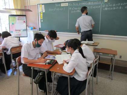 1組は数学で、「君も今日から2次方程式の解き方マスターだ!」という目標のもと、グループ学習を行いました。