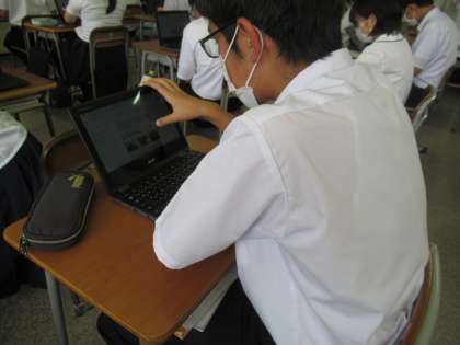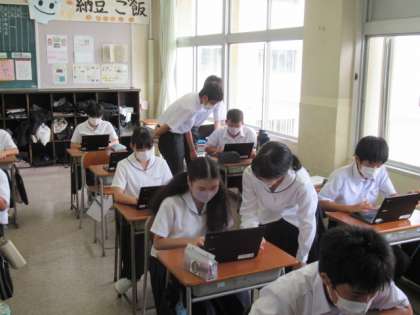 パソコンを使ってのレポート作成なため、操作も慣れないことがあったと思います。そんな時は、周りで教え合うなどの思いやりのある行動が見られました。