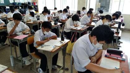 1組は理科で「水溶液の性質」2組は国語で「大人になれなかった弟たち」